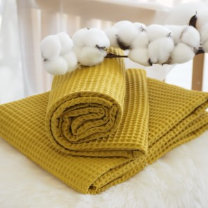 Kocyk bawełniany wafel MUSZTARDA 75x100cm