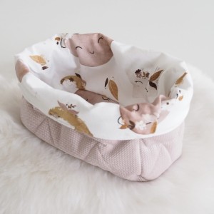 Będąc rodzicem niełatwo jest utrzymać ład i porządek. Oferujemy Państwu materiałowe koszyczki na wszystkie przydatne przybory. Można ich urzyć do przechowywania środków higieny po kąpaniu, pieluszek, smoczków czy skarpetek. Wykonane z bawełny premium oraz dzianiny velvet pasujących do pozostałych elementów wyprawki, którą możecie skompletować w naszym sklepie.