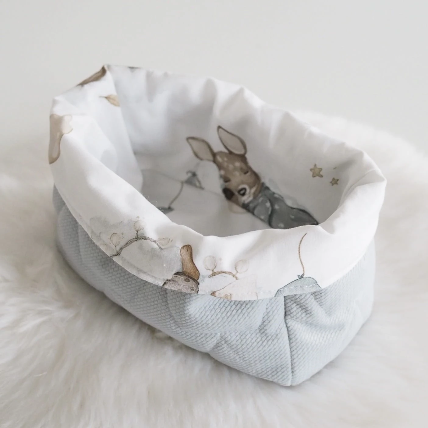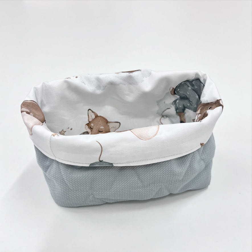 Będąc rodzicem niełatwo jest utrzymać ład i porządek. Oferujemy Państwu materiałowe koszyczki na wszystkie przydatne przybory. Można ich urzyć do przechowywania środków higieny po kąpaniu, pieluszek, smoczków czy skarpetek. Wykonane z bawełny premium oraz dzianiny velvet pasujących do pozostałych elementów wyprawki, którą możecie skompletować w naszym sklepie.