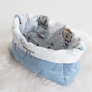Będąc rodzicem niełatwo jest utrzymać ład i porządek. Oferujemy Państwu materiałowe koszyczki na wszystkie przydatne przybory. Można ich urzyć do przechowywania środków higieny po kąpaniu, pieluszek, smoczków czy skarpetek. Wykonane z bawełny premium oraz dzianiny velvet pasujących do pozostałych elementów wyprawki, którą możecie skompletować w naszym sklepie.