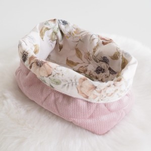 Będąc rodzicem niełatwo jest utrzymać ład i porządek. Oferujemy Państwu materiałowe koszyczki na wszystkie przydatne przybory. Można ich urzyć do przechowywania środków higieny po kąpaniu, pieluszek, smoczków czy skarpetek. Wykonane z bawełny premium oraz dzianiny velvet pasujących do pozostałych elementów wyprawki, którą możecie skompletować w naszym sklepie.