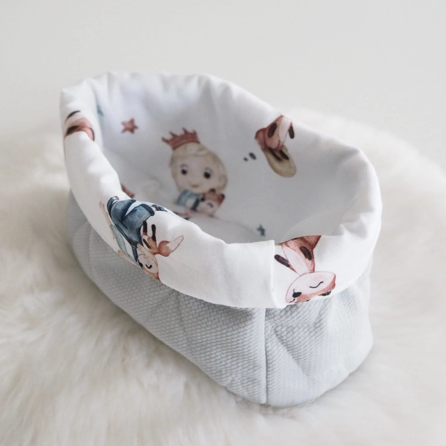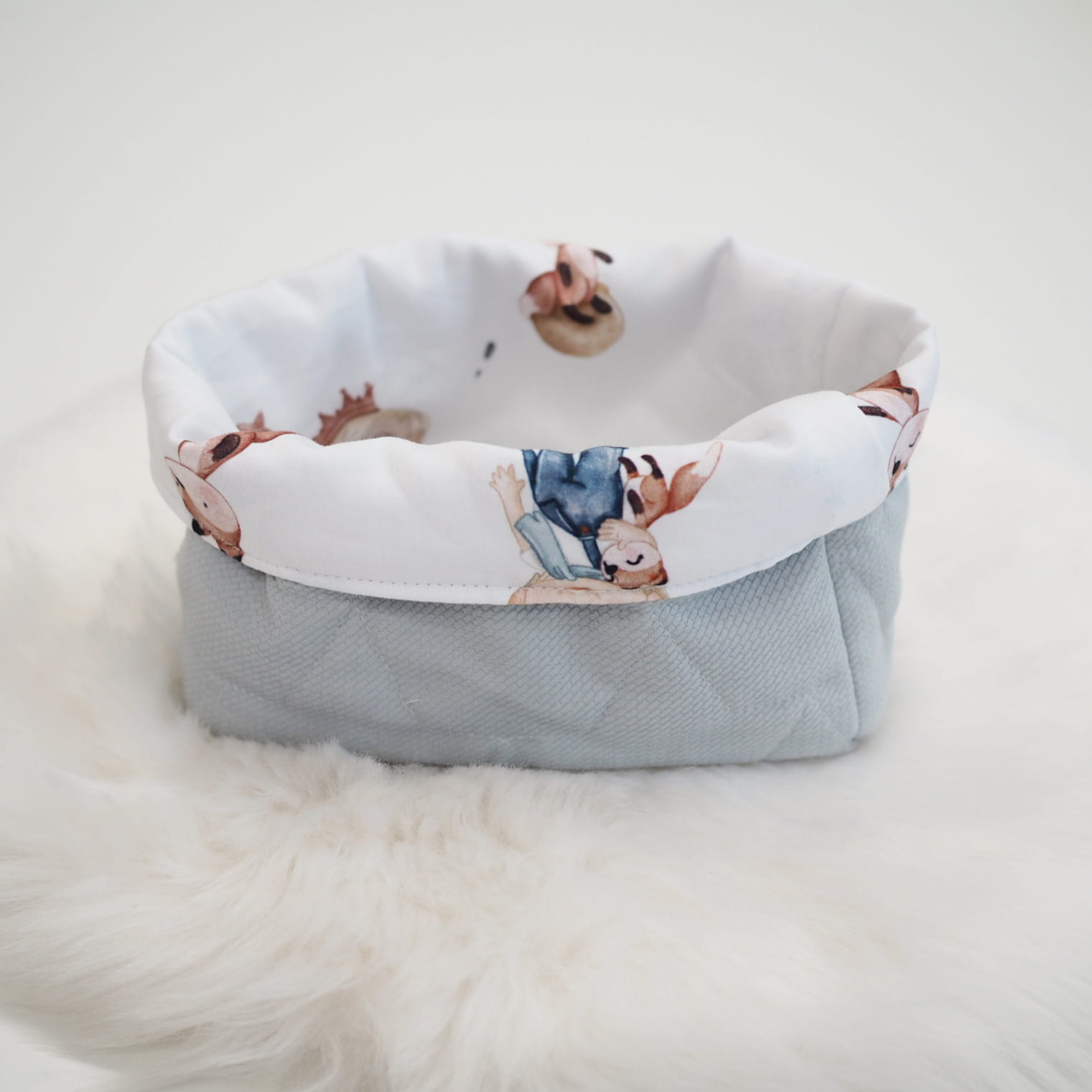 Będąc rodzicem niełatwo jest utrzymać ład i porządek. Oferujemy Państwu materiałowe koszyczki na wszystkie przydatne przybory. Można ich urzyć do przechowywania środków higieny po kąpaniu, pieluszek, smoczków czy skarpetek. Wykonane z bawełny premium oraz dzianiny velvet pasujących do pozostałych elementów wyprawki, którą możecie skompletować w naszym sklepie.