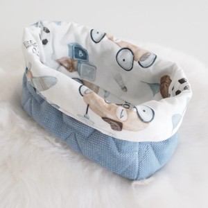 Będąc rodzicem niełatwo jest utrzymać ład i porządek. Oferujemy Państwu materiałowe koszyczki na wszystkie przydatne przybory. Można ich urzyć do przechowywania środków higieny po kąpaniu, pieluszek, smoczków czy skarpetek. Wykonane z bawełny premium oraz dzianiny velvet pasujących do pozostałych elementów wyprawki, którą możecie skompletować w naszym sklepie.