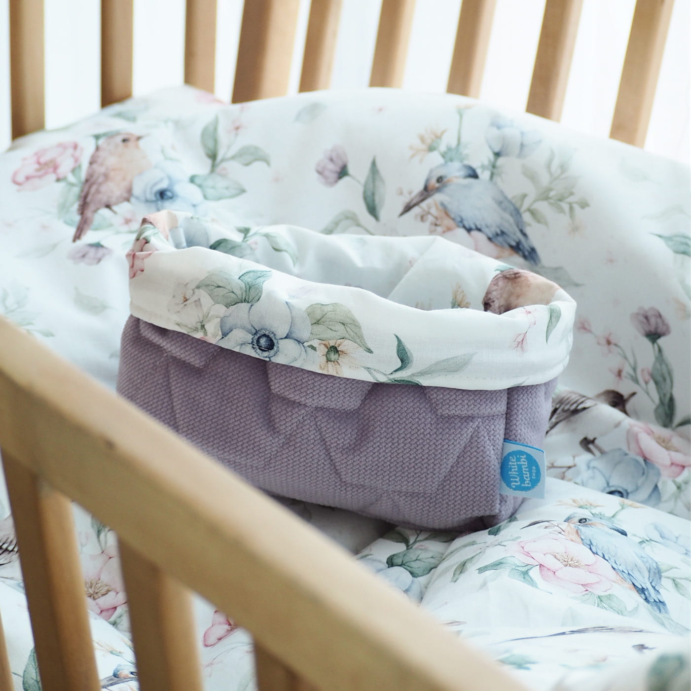 Będąc rodzicem niełatwo jest utrzymać ład i porządek. Oferujemy Państwu materiałowe koszyczki na wszystkie przydatne przybory. Można ich urzyć do przechowywania środków higieny po kąpaniu, pieluszek, smoczków czy skarpetek. Wykonane z bawełny premium oraz dzianiny velvet pasujących do pozostałych elementów wyprawki, którą możecie skompletować w naszym sklepie.