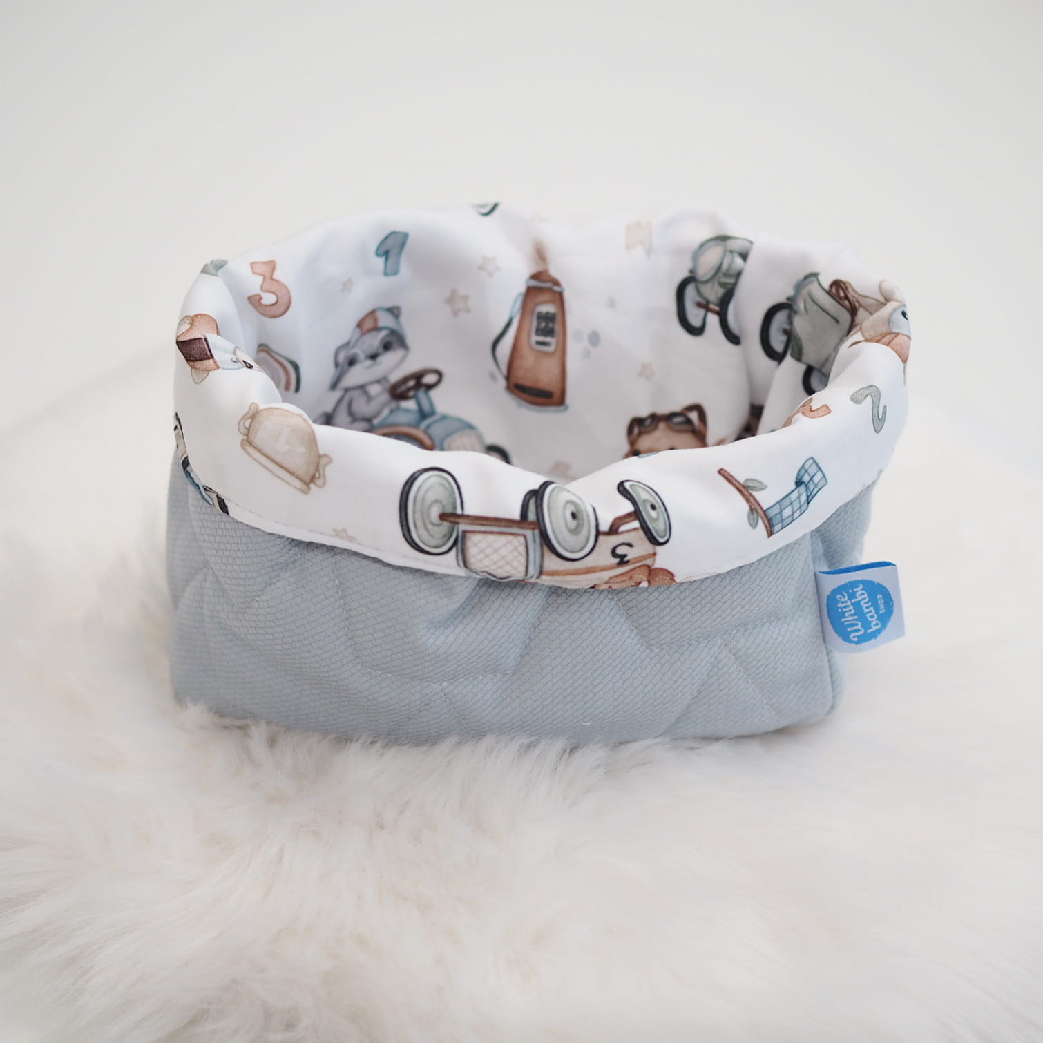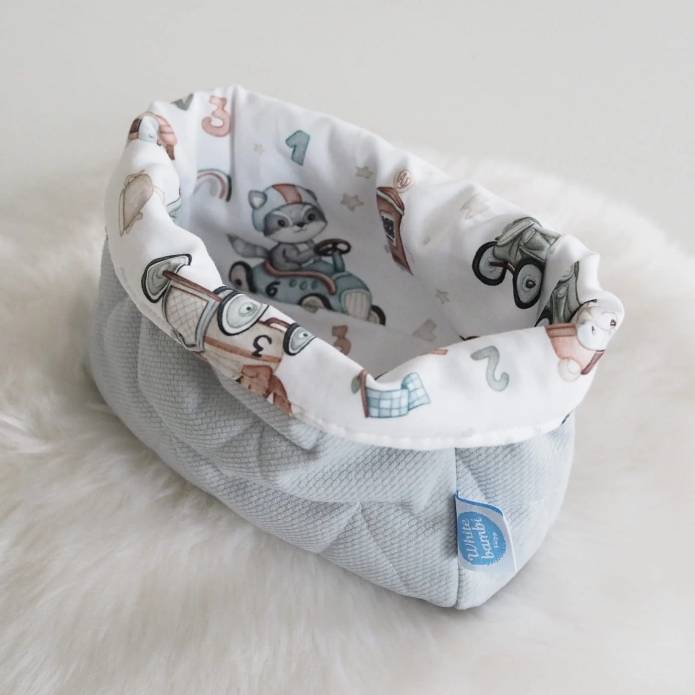 Będąc rodzicem niełatwo jest utrzymać ład i porządek. Oferujemy Państwu materiałowe koszyczki na wszystkie przydatne przybory. Można ich urzyć do przechowywania środków higieny po kąpaniu, pieluszek, smoczków czy skarpetek. Wykonane z bawełny premium oraz dzianiny velvet pasujących do pozostałych elementów wyprawki, którą możecie skompletować w naszym sklepie.