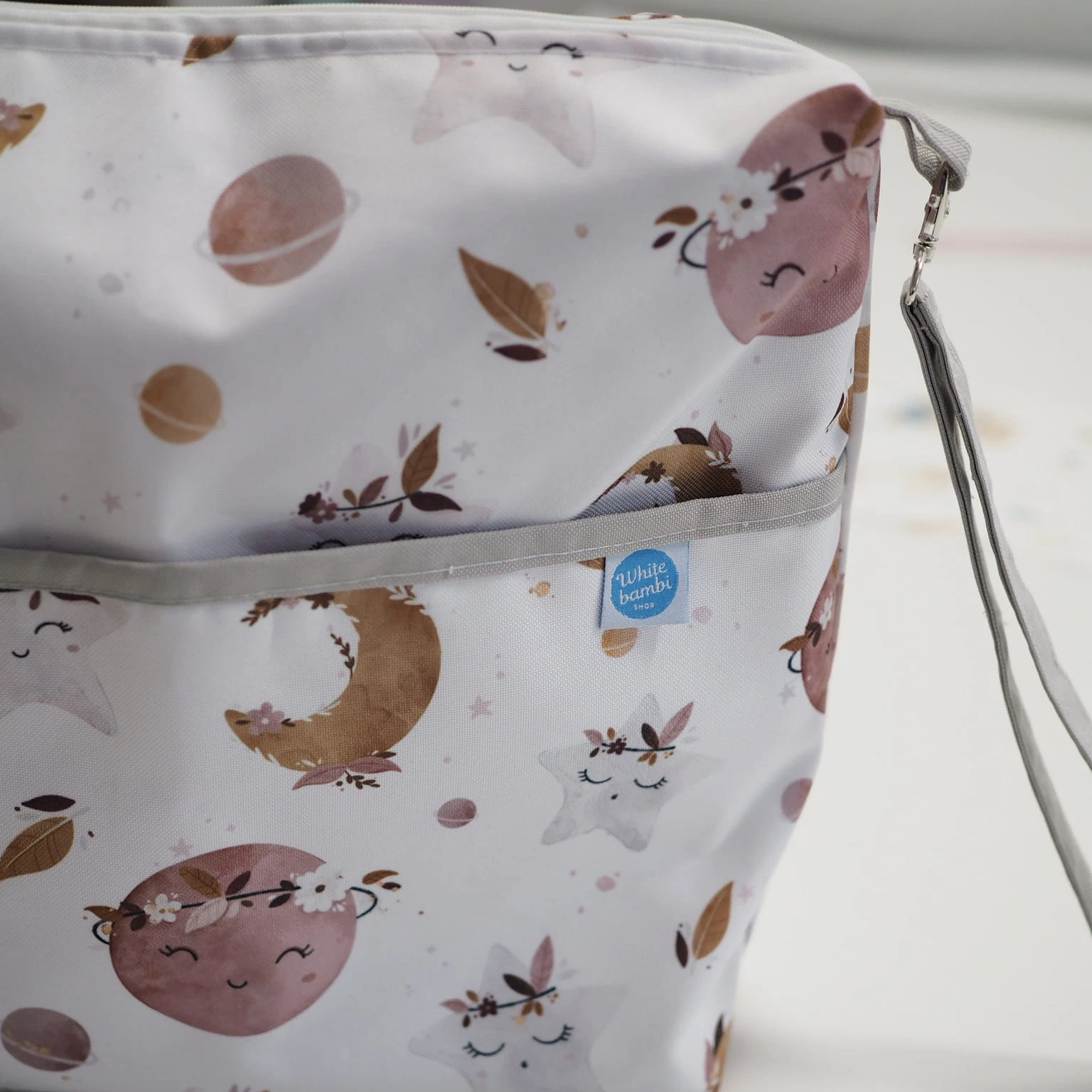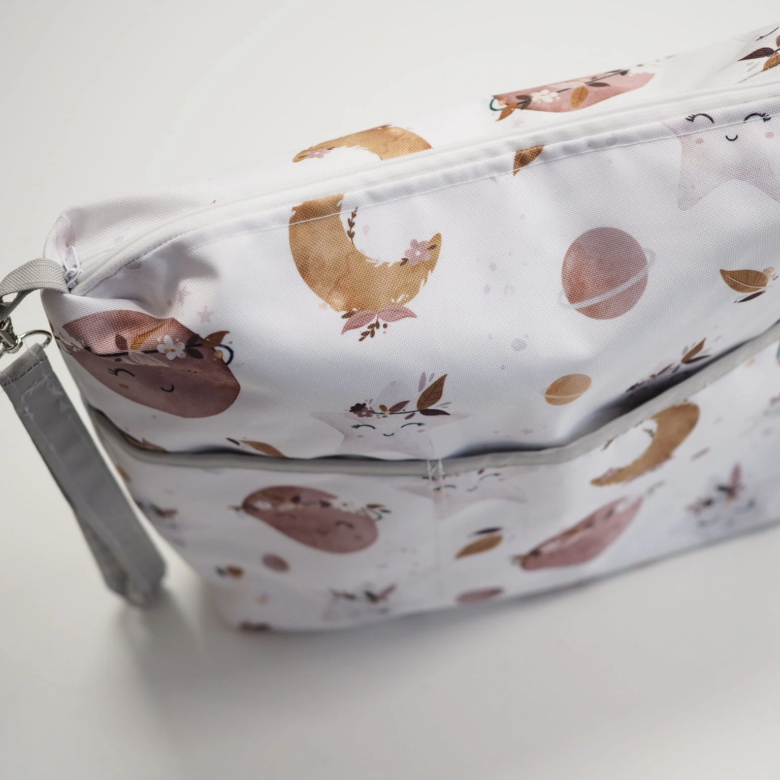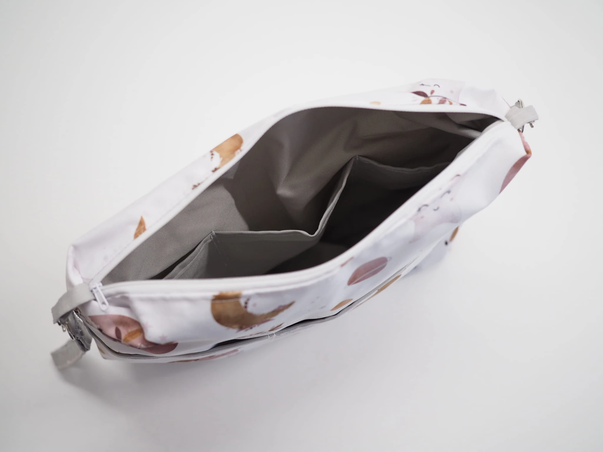 Organizer do wózka wykonany z wodoodpornej tkaniny. Tylko jeden taki egzemplarz. Mocowania do wózka.