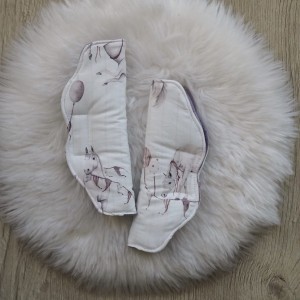 Aby każda podróż była przyjemnością. Osłonki na pasy wykonane z naszych pięknych wzorów. Jedna strona to bawełna premium, druga zaś, delikatna i przyjemna w dotyku dzianina velvet. Osłonki mają wyjątkowy kształt, który przypadnie do gustu małym odkrywcom. Mocowane są za pomocą rzepu. Z łatwością zamontujecie je w fotelikach i wózkach maluszków.