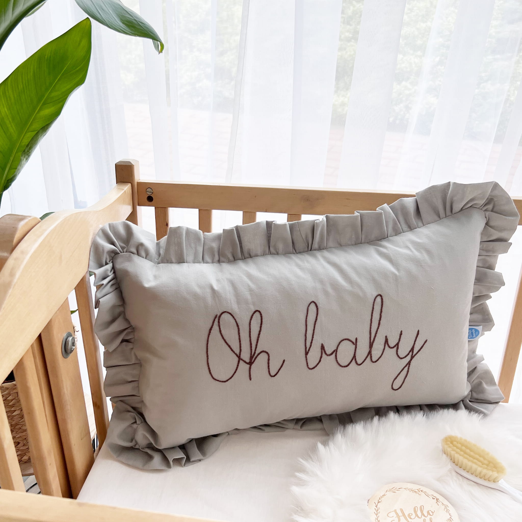 Poduszka haftowana z falbanką GREY