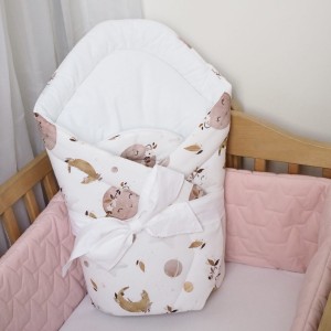 Wykonany obustronnie z wysokiej jakości bawełny, jest delikatny dla wrażliwej skóry dziecka i zapewnia odpowiednią cyrkulację powietrza. Rożek wiązany jest szeroką, miękką szarfą – bez drażniących rzepów, dzięki czemu możesz łatwo dopasować otulenie do potrzeb maluszka.